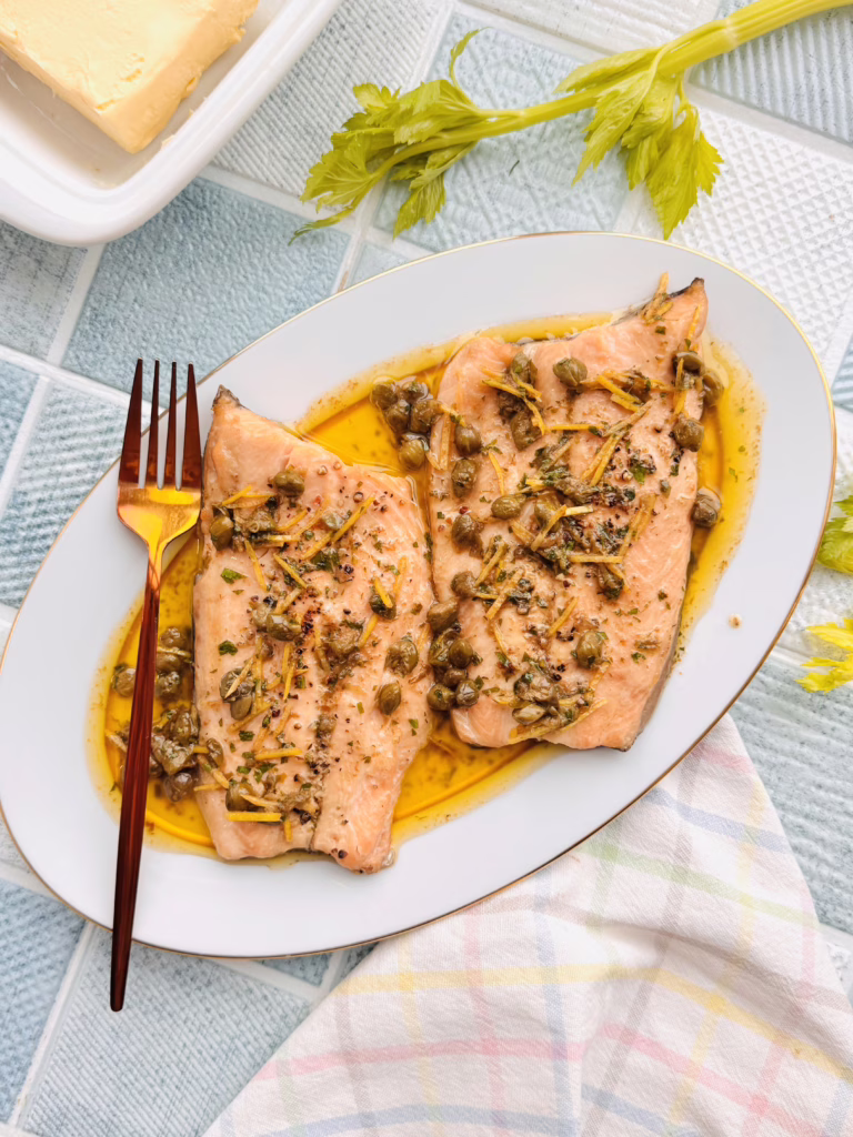 Це французька класика, адаптована для швидкої вечері: ми просто прогріємо вершкове масло до карамельного кольору, щоб воно набуло аромату фундука, і додамо каперси для балансу. Максимум смаку при мінімумі брудного посуду.