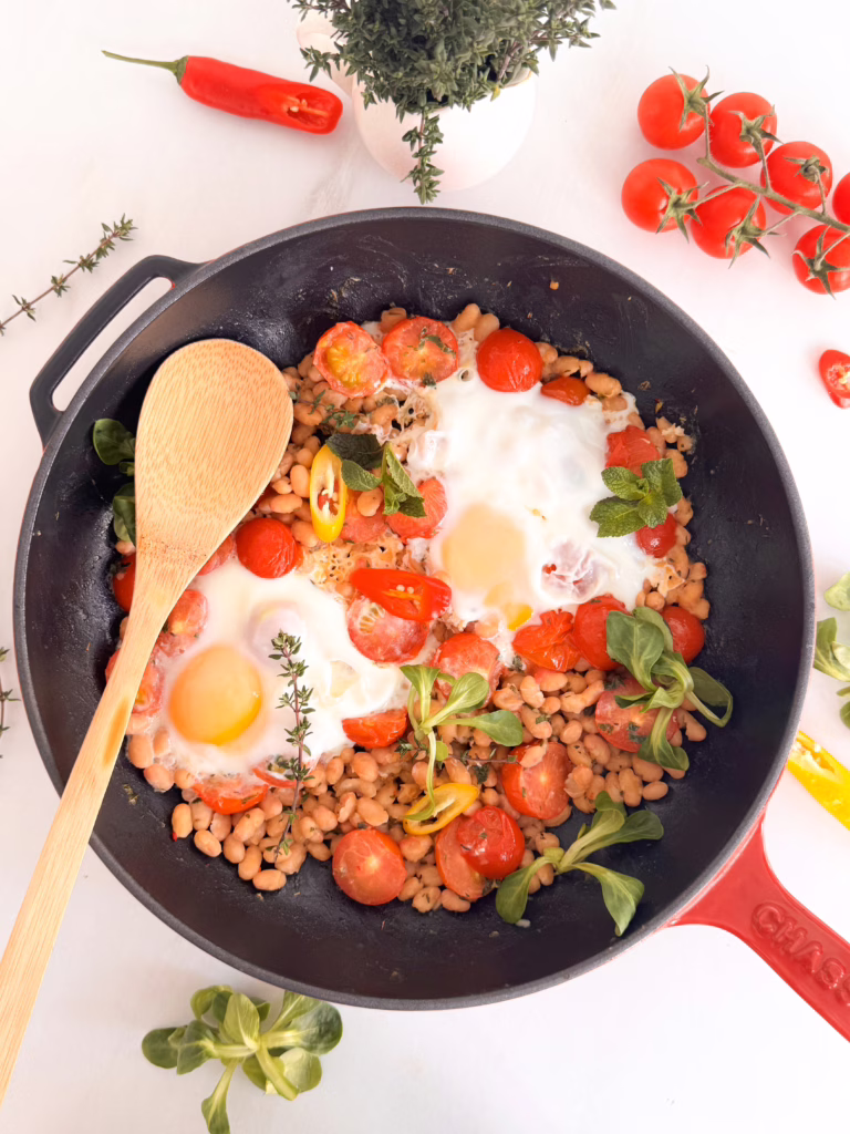 Я обожнюю концепцію “розумної кухні”: коли мінімум інгредієнтів дають максимум користі та задоволення. Сьогодні готуємо ситний білковий сніданок (або швидку вечерю), де головну роль грає поєднання ніжної білої квасолі, соковитих томатів та свіжої м’яти.